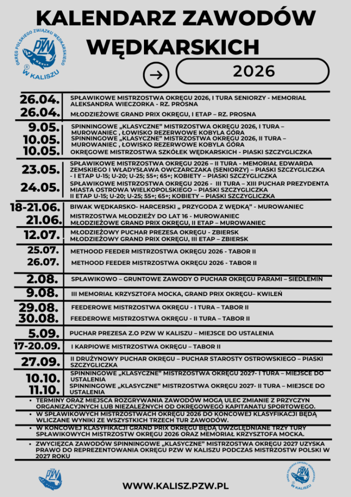 Zawody podlodowe o „Puchar Prezesa Okręgu PZW w Kaliszu 2026”.