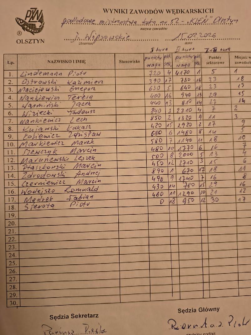 Zawody Spławikowe o Mistrzostwo Koła PZW Żółkiewka dnia 26 kwietnia 2026 r.