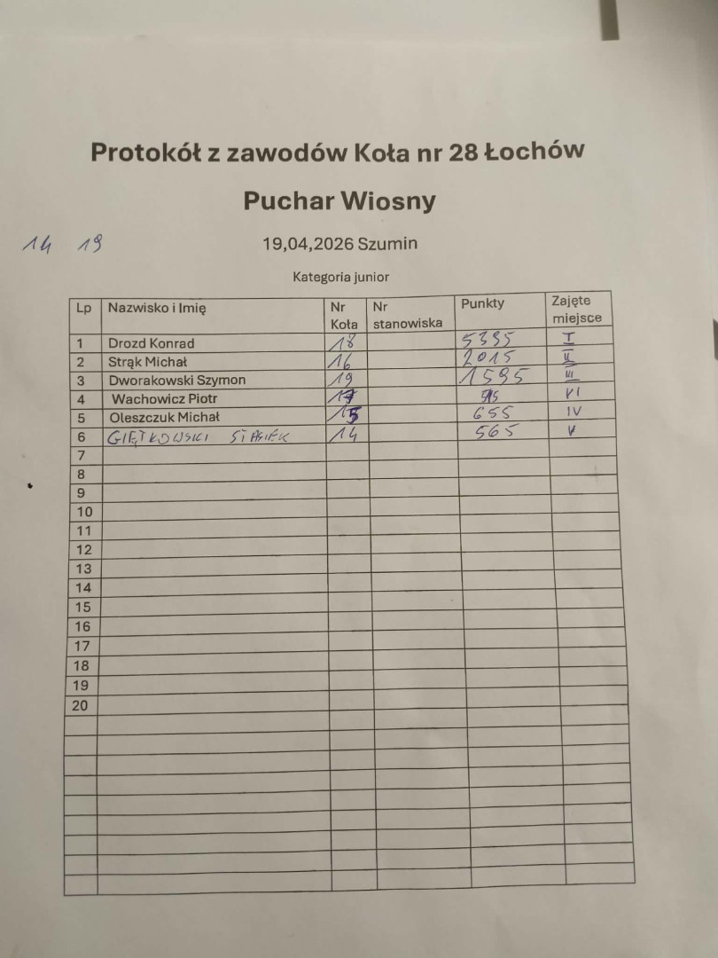 Zawody Spławikowe o Mistrzostwo Koła PZW Żółkiewka dnia 26 kwietnia 2026 r.